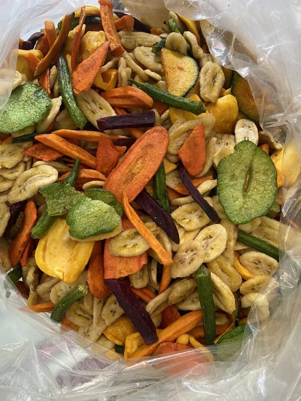 Ingredient: 43% Banana, 34% sweet potato, 6% mango, 4% carrot, 4% pumpkin, 3% taro, 3% jackfruit, 1% Okra, 1% bitter melon and vegetable oil